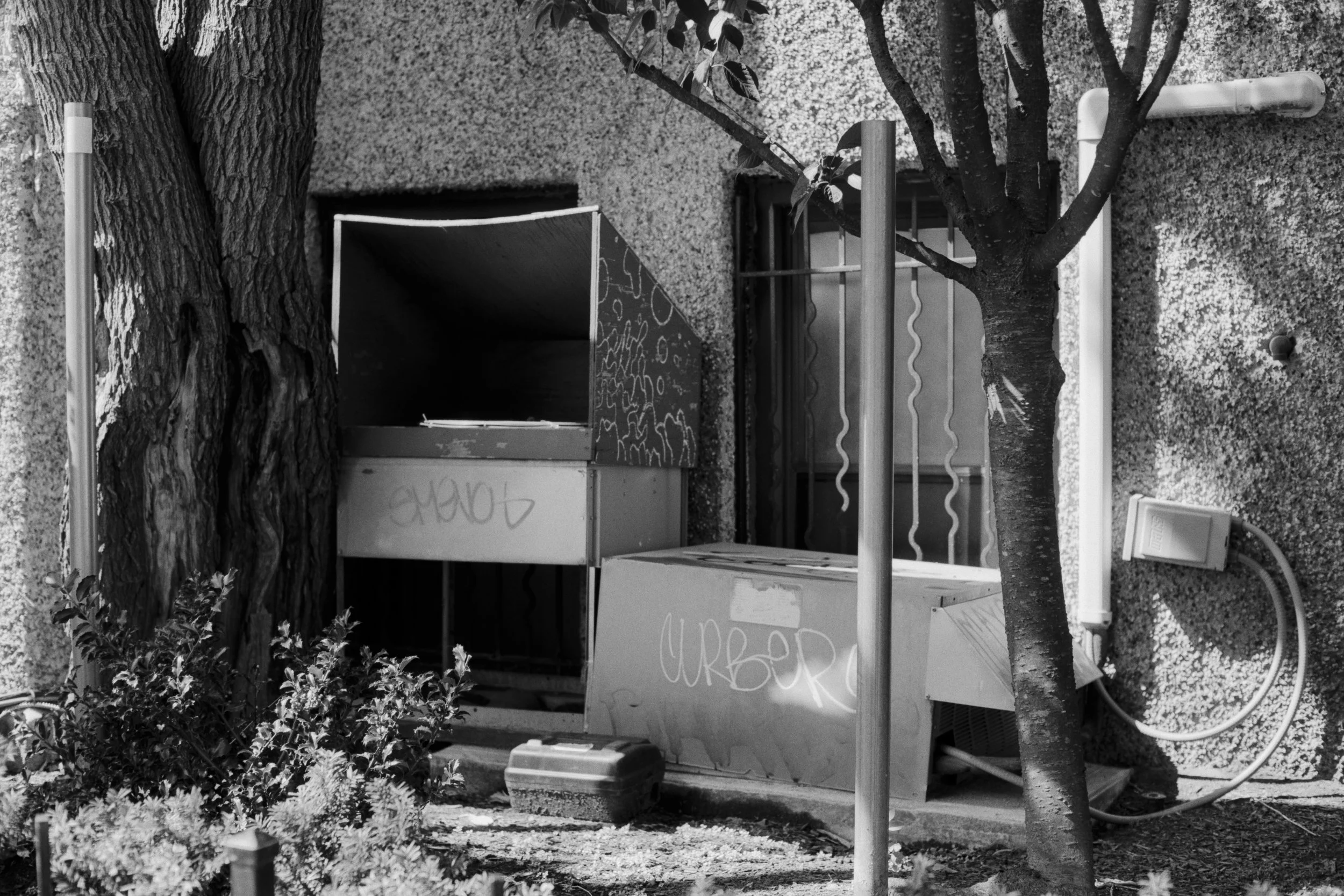 I was intrigued by the chandelier beside the dumpster. This is a telling situation. The small, plastic rendition of a historically prevalent symbol of status and wealth, sitting disheveled in an alley. What does this mean?